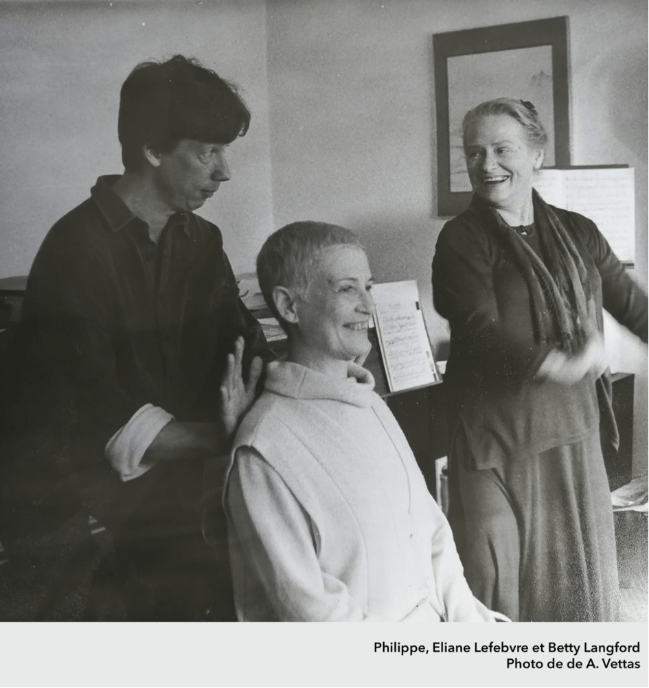 Ses mains, simplement posées, permettent à l’élève de retrouver espace intérieur, pleine mobilité et d’apprendre à refuser ce qui entrave positions et gestes naturels.